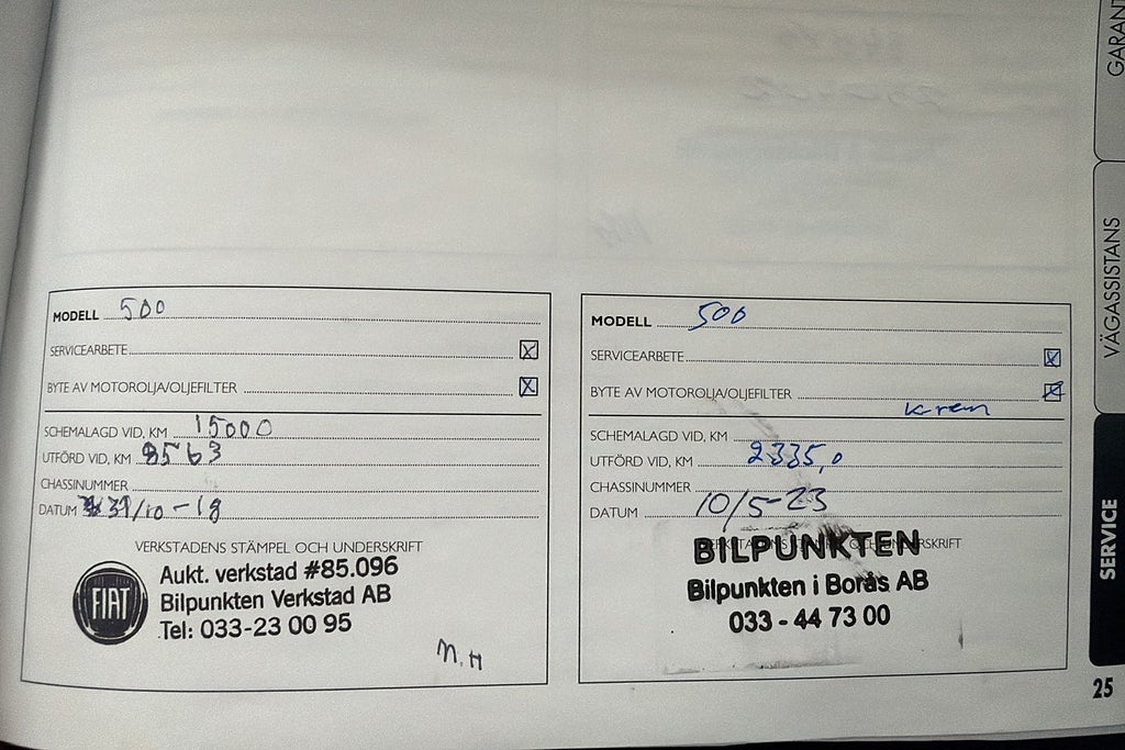 - Här har vi fått in en välvårdad Fiat 500 med låga mil. En perfekt bil för dig som inte har behov av stora lastutrymmen. En bil som är billig i ägande och driftkostnader med sin 1,2 Liters bensinmotor i kombination med en manuell växellåda. Förbrukning ca: 0,61L/mil. Fordonsskatt: 448:-/år. Besiktigad tom. 31/8-2026. Senaste service 2/4-2025 vid 3.457 mil. Vi erbjuder finansiering via Santander och My Money. Garantier erbjuds via Fragus. Vi tar er bil i inbyte kontakta oss för kostnadsförslag.